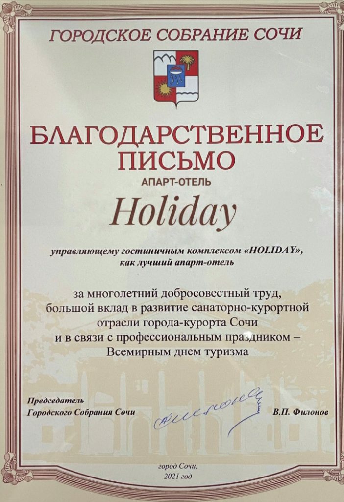 В гостином комплексе “Holiday” гостей ожидает радушный прием, европейский комфорт, ласковый морской бриз, прохладные ночи и тишина.